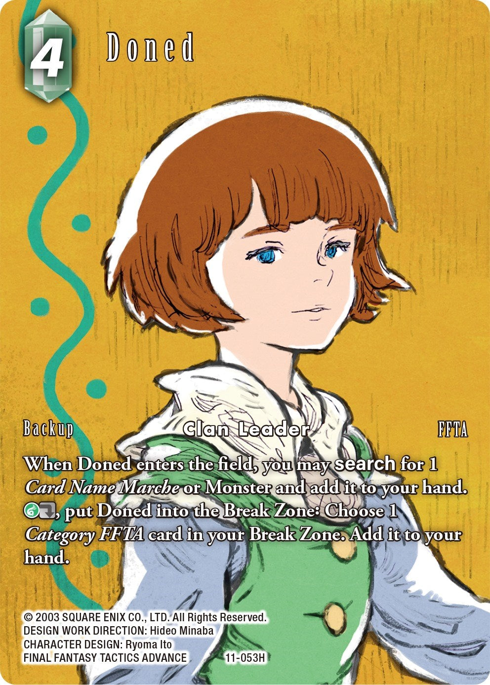 [G][Dull], put Doned into the Break Zone: Choose 1 Category FFTA card in your Break Zone. Add it to your hand.