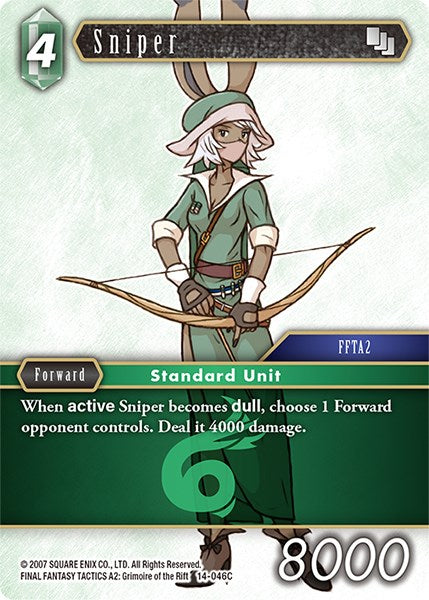 When active Sniper becomes dull, choose 1 Forward opponent controls. Deal it 4000 damage.