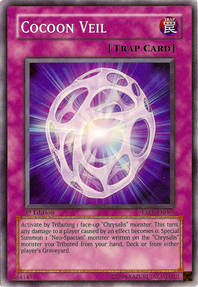 Activate by Tributing 1 face-up 'Chrysalis' monster. This turn, any damage to a player caused by an effect becomes 0. Special Summon 1 'Neo-Spacian' monster written on the 'Chrysalis' monster you Tributed from your hand, Deck or from either player's Graveyard.