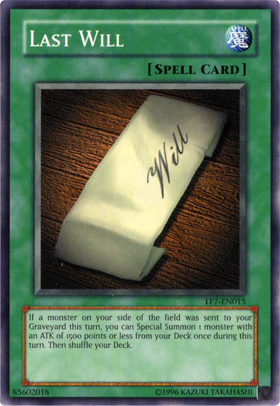 If a monster on your side of the field was sent to your Graveyard this turn, your can Special Summon 1 monster with the ATK of 1500 or less from your Deck once during this turn. Then shuffle the Deck.